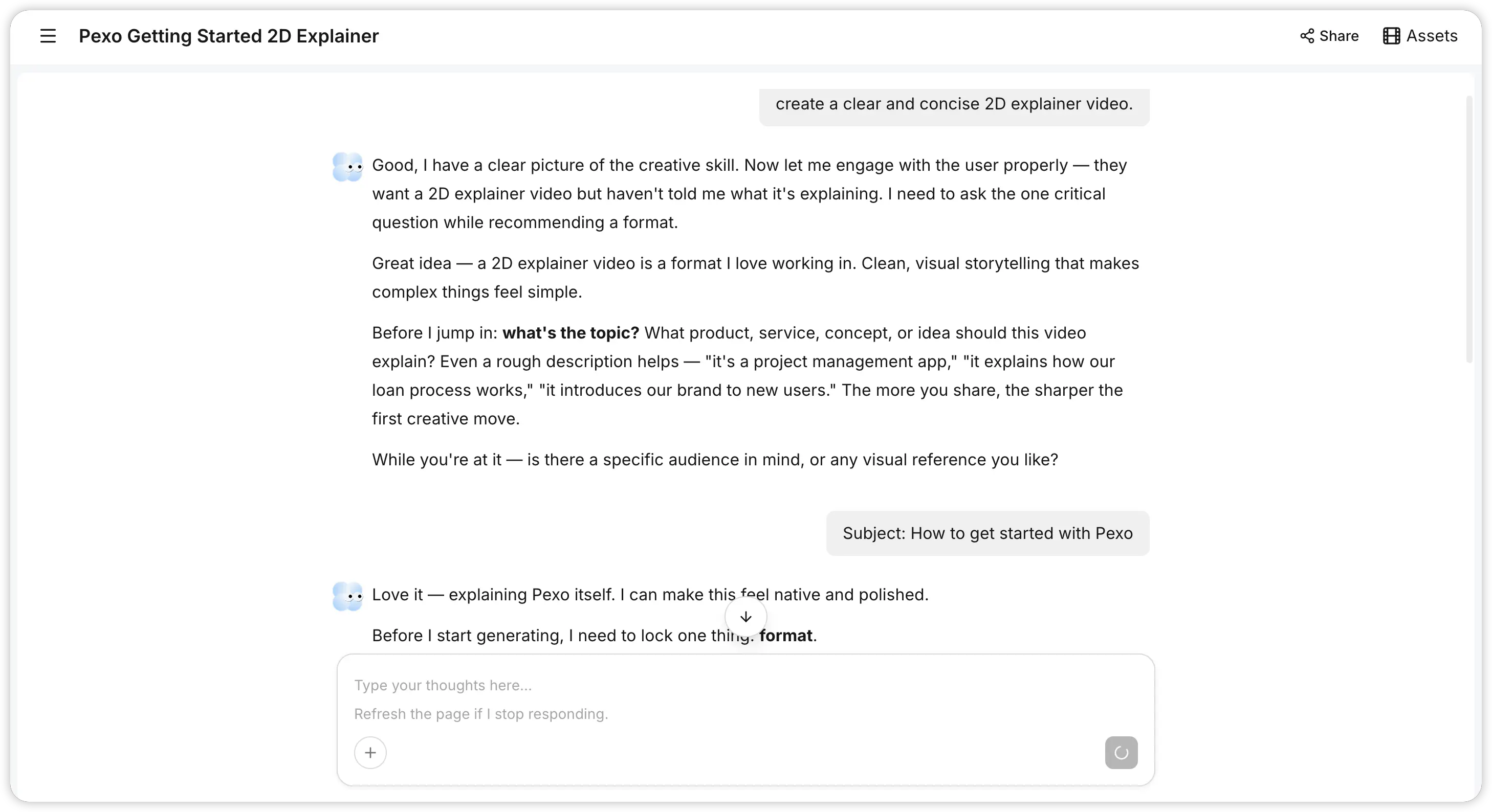 Platforms like Pexo AI represent this shift. Rather than functioning as a tool you operate, Pexo acts as an AI video partner that collaborates with you through conversation. You describe a concept, Pexo suggests creative directions with visual previews, and you refine the output by giving feedback the same way you would brief a colleague. You can even simply say, “Create a clear and concise 2D explainer video,” and Pexo handles the rest. No scripts are needed. No prompt engineering is required. The barrier to entry drops to near zero, which means marketing teams, educators, e-commerce sellers, and solo creators can all produce professional explainer videos without specialized skills.